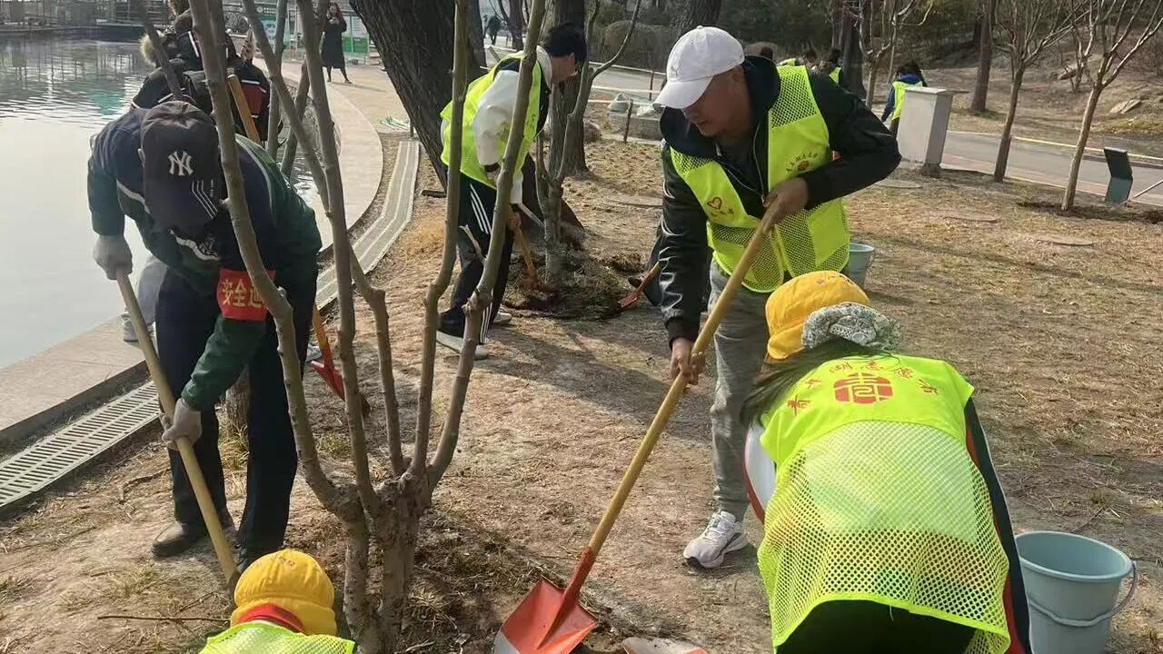 三月的青年湖公园,草木萌动,生机盎然。活动现场,大家身着公益志愿服装,与各界志愿者并肩协作,手持铁锹、水桶等工具,有条不紊地开展公益工作。阳光洒在身上,汗水浸湿衣衫,却丝毫未减大家的热情,大家默契配合、干劲十足,用劳动诠释着“绿水青山就是金山银山”的生态理念,为青年湖增添了一抹鲜活的新绿。