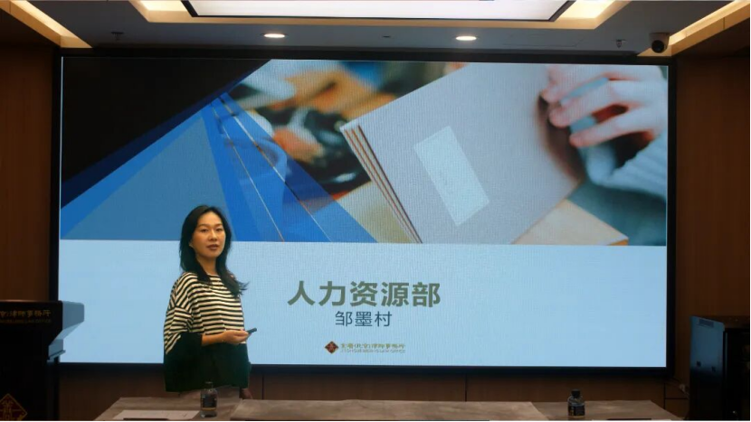 会议最后,由运营团队各职能部门介绍服务内容。人力资源部、行政服务部、风控财务部、品牌发展部和市场运营部分别就人才引进政策、日常行政支持、案件流程管理及风控提示、品牌宣传与市场开拓等方面进行了系统说明,为律师们后续开展工作提供清晰指引。