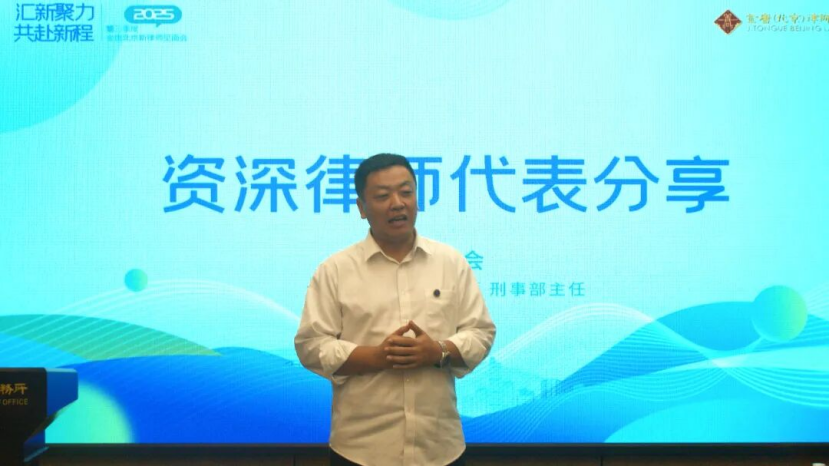 在庄重的授徽仪式之后,金唐(北京)律师事务所刑事部主任吕新会律师作为资深律师代表进行分享。吕律师结合其多年执业经历和典型案件,阐述了刑事辩护业务的专业特点与发展趋势。