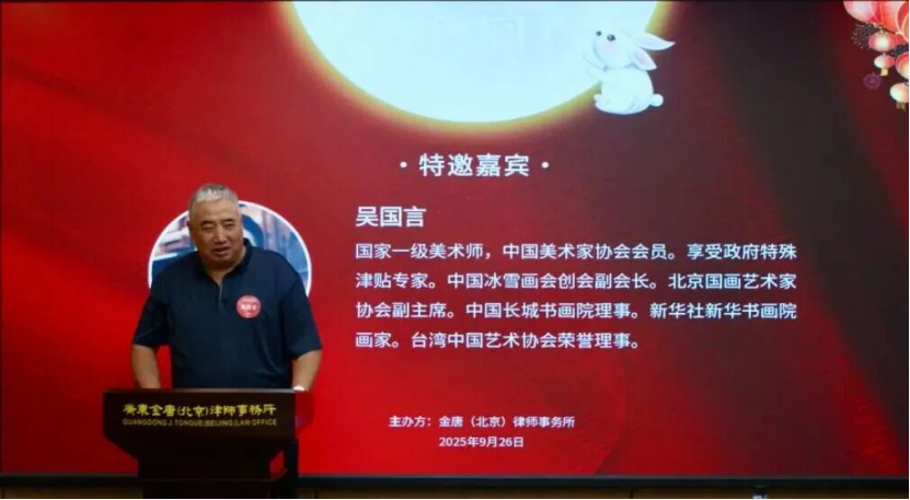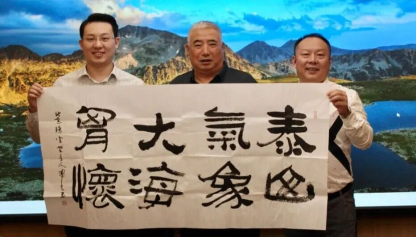 在受赠仪式中,在金唐(北京)律师事务所执行主任张玉龙的诚挚邀请下,画家吴国言先生亲持毛笔完成钤印环节,将“泰山气象、大海胸怀”题字,赠送给金唐(北京)律师事务所。现场有律师注意到“泰”字的撇捺如泰山挑夫的扁担般扎实,“海”字的捺笔似海浪般舒展,忍不住称赞:“这字里有山东人的精气神!”
