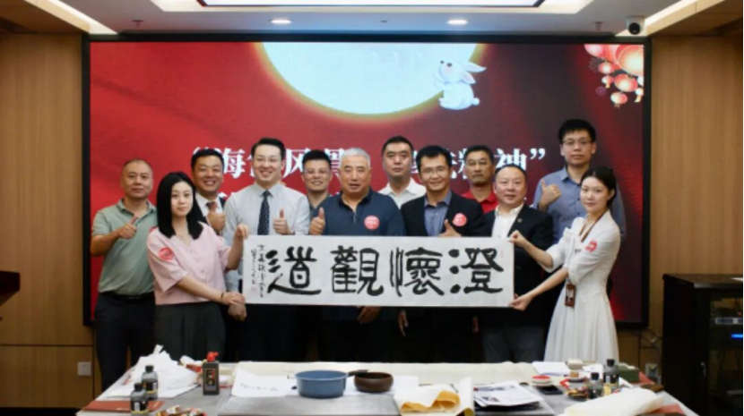 交流会进入互动环节,吴国言先生的现场挥毫将活动推向高潮,他提笔落墨,“澄怀观道”书法作品一气呵成,笔力苍劲,墨韵悠长,引得律师们纷纷驻足欣赏。合影环节,这幅作品成为全场焦点,将文化气韵与律法精神完美交融。 随后吴国言先生为吕新会律师现场挥毫赠送”习促会刑辩“墨宝苍劲有力,既是对其刑辩专业的认可,也为律所发展送上文化祝福,引得众人称赞。 在互动抽奖环节,第一份惊喜花落金唐北京所刑事部主任吕新会律师,吕律发现该幅墨宝中有“海涛”二字,遂将该幅作品现场转赠与金唐北京律师事务所商业调查管理咨询中心张海涛主任,共同合影记录下这意义非凡的一刻,让互动环节的氛围持续升温。