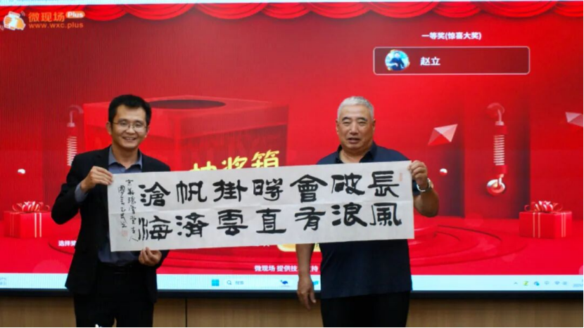 互动抽奖环节惊喜不断,第二份书法作品大奖被北京市道可特律师事务所刘英波律师将幸运收入囊中。接连不断的惊喜,让现场的乡情与喜悦愈发浓厚。