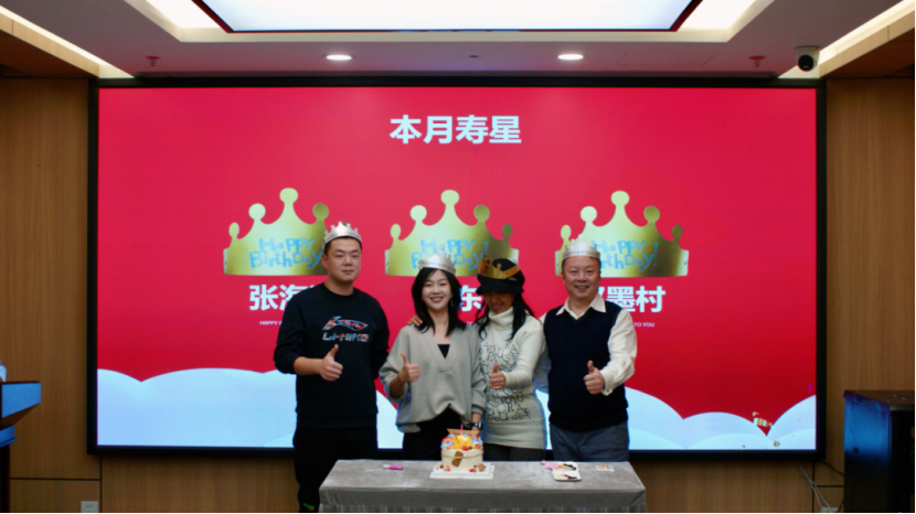 十一月份生日的寿星们齐聚一堂接受大家的祝福,在生日快乐的歌声中,寿星们许下心愿,大家共同分享甜蜜蛋糕,传递浓厚情谊。