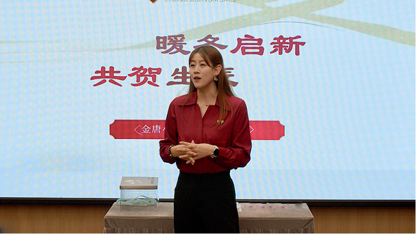 活动伊始,金唐(北京)律师事务所文娱产业法律事务部主任、知识产权业务部主任王悠然律师在致辞中特别提到,金唐律所始终重视团队建设和人文关怀,每月都会为过生日的律师举办生日庆祝活动,而本次恰逢冬至佳节,更显意义非凡。
